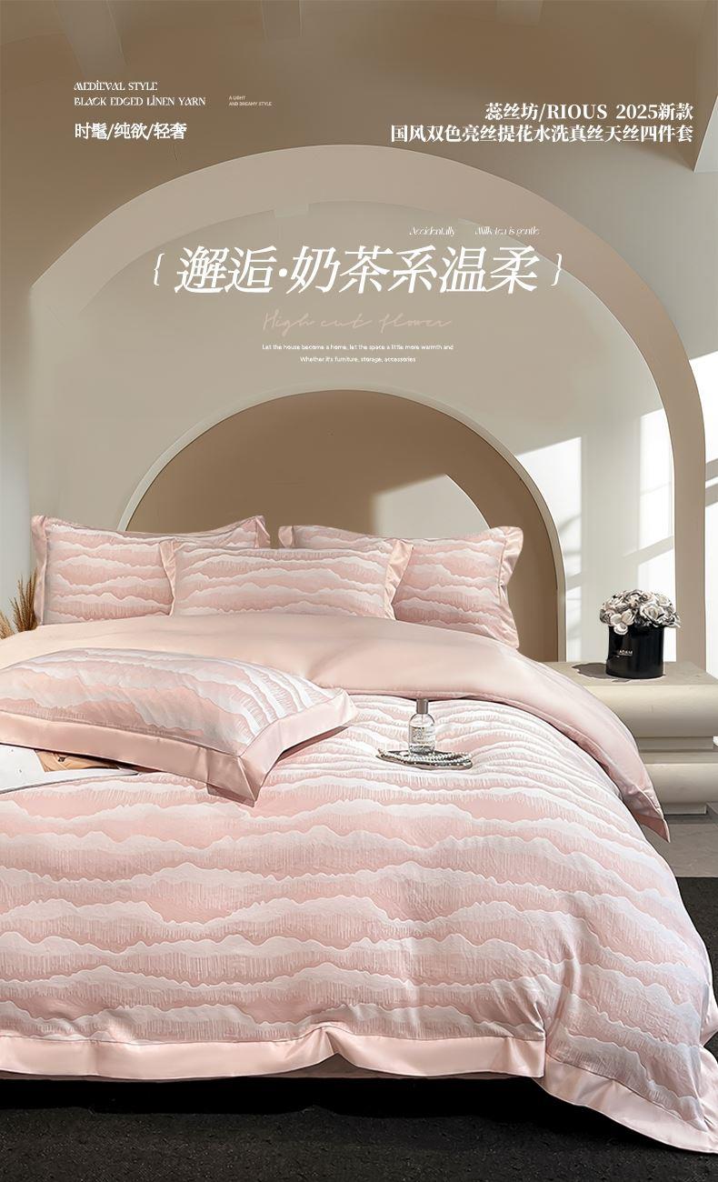 蕊丝坊家纺新款国风双色亮丝提花水洗真丝天丝四件套