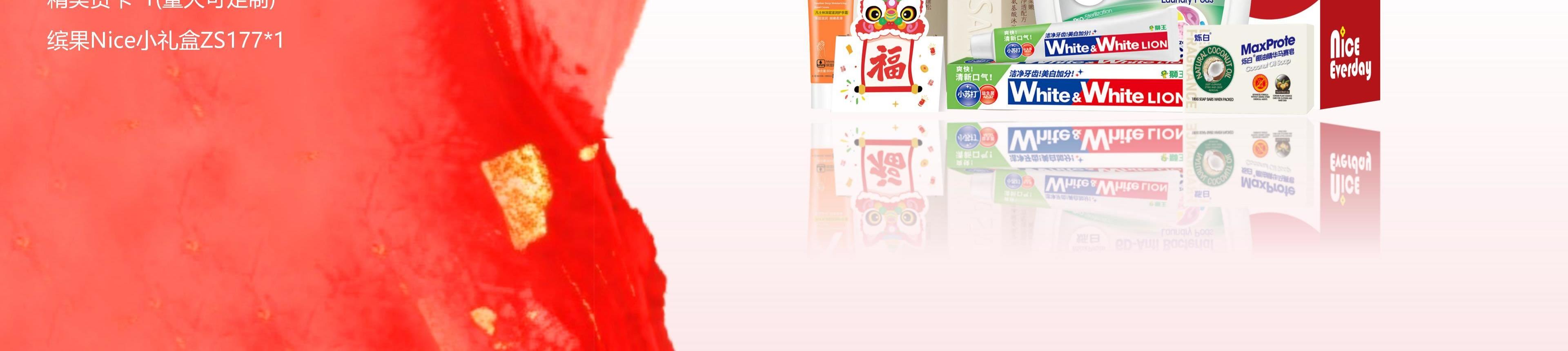 配置明细: 浅香晚樱氨基酸洗发水500g*1 浅香百合氨基酸沐浴露500g*1 LK 凡士林深层滋润护手霜 80g*1 Maxprote烁白炫彩6D倍净 除 菌 洗衣凝珠10g*22颗*1 Maxprote烁白椰油精华马赛皂180g*1 狮王(Lion)小苏打美白清新牙膏100g*1 优至弹力中毛牙刷单支装*1 精美贺卡*1(量大可定制) 缤果Nice小礼盒ZS177*1