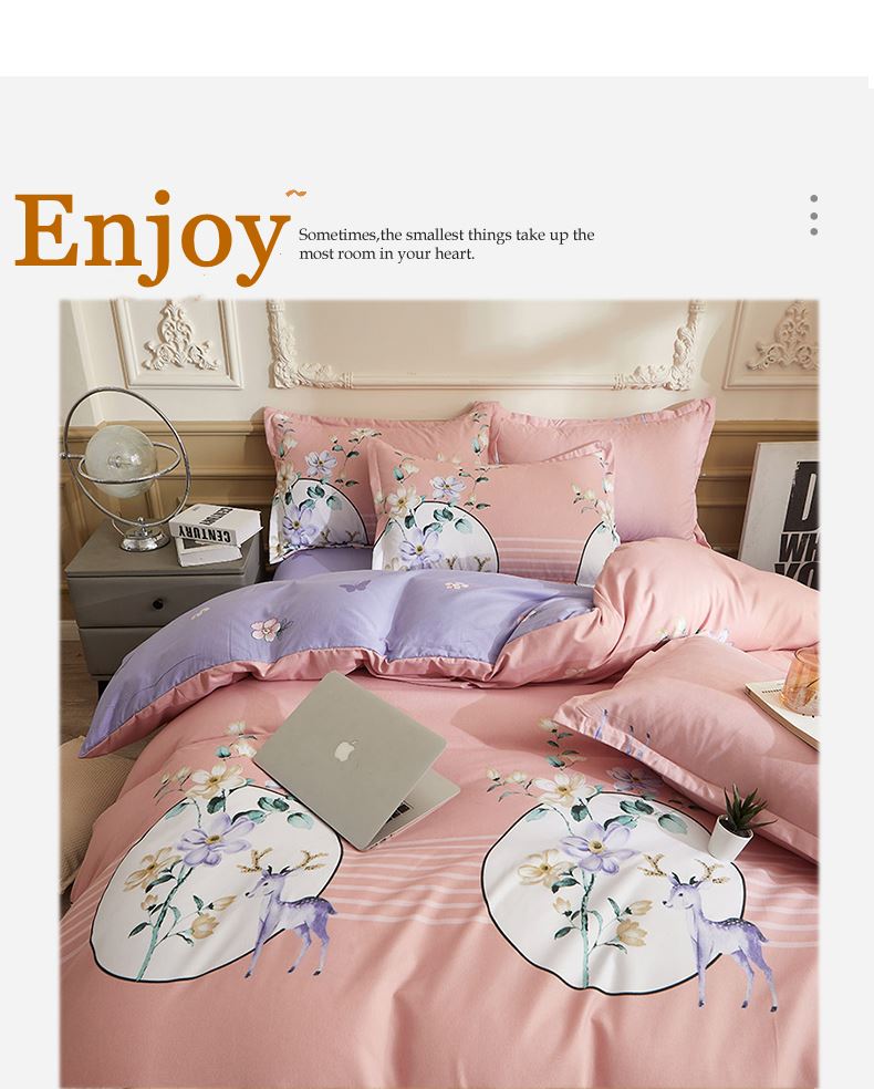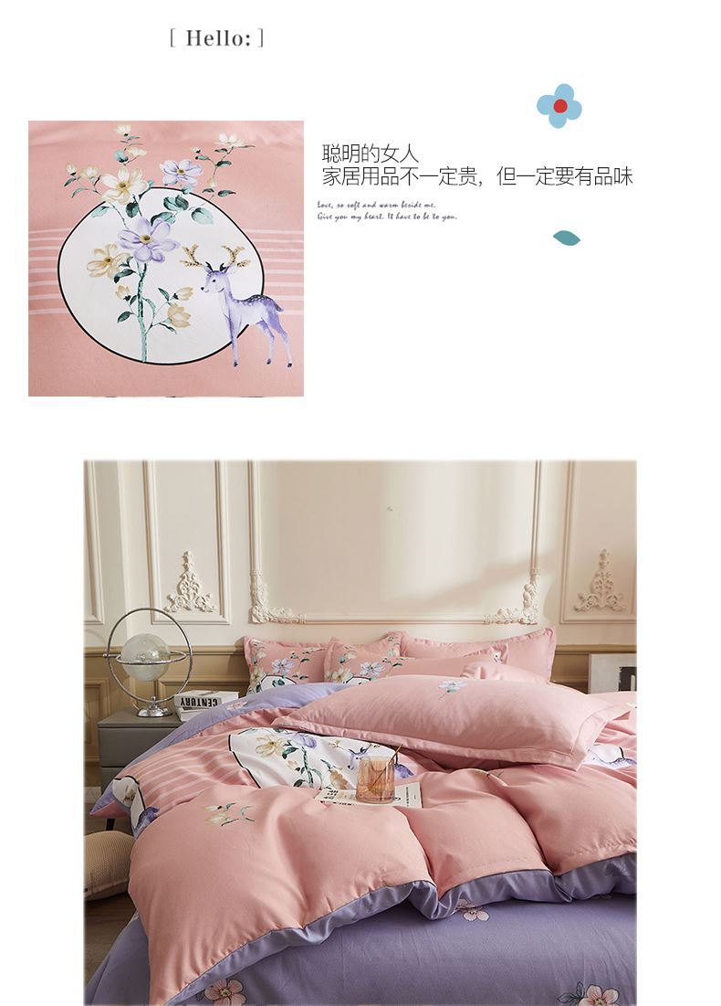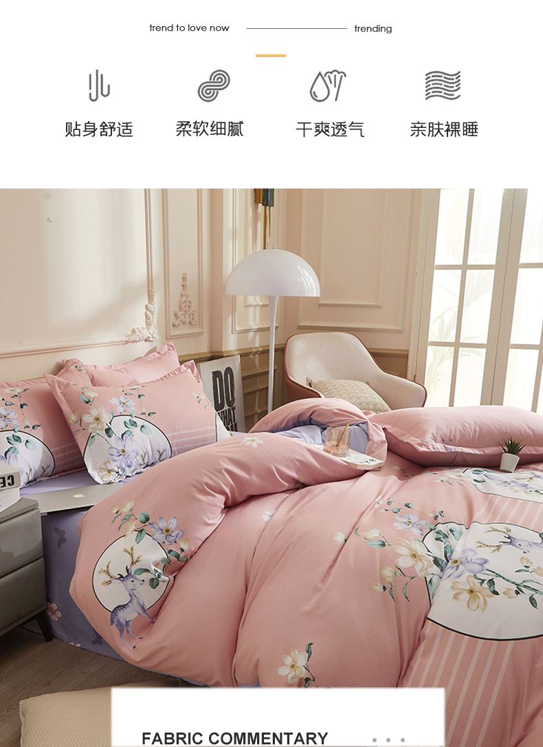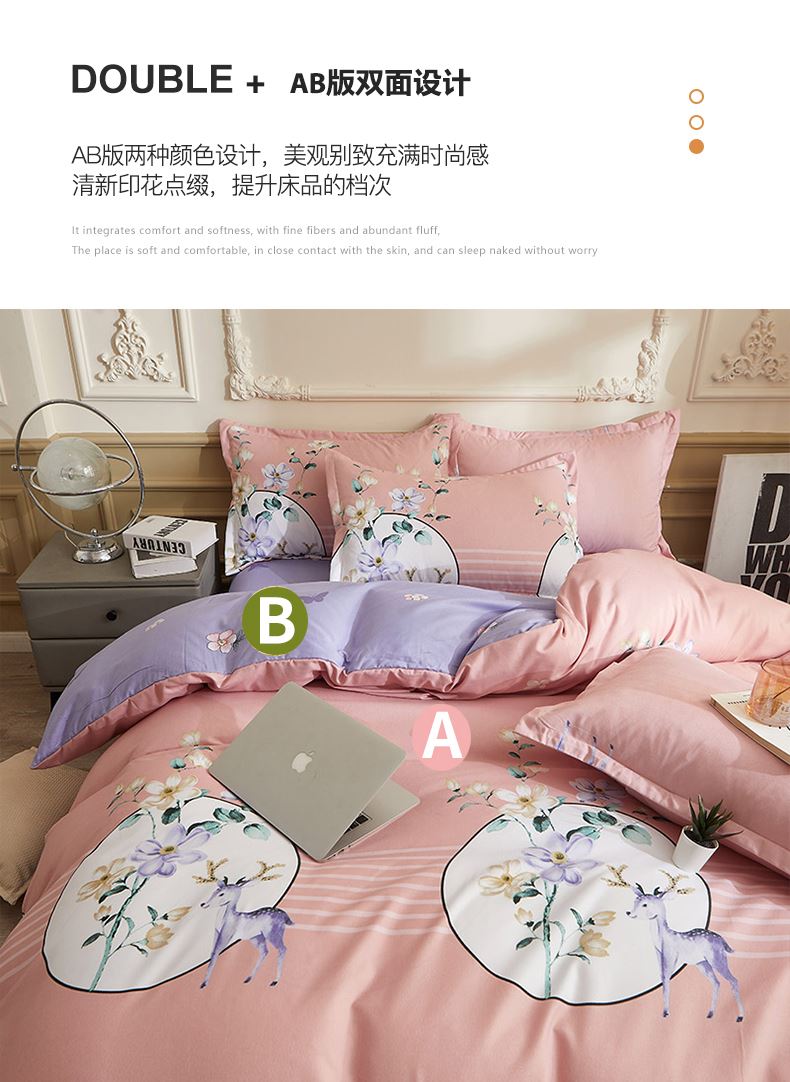 规格:被套200*230cm 床单230*245cm 枕套48*74cm(1.5/1.8米床) 面料:140克高克重植物羊绒面料 花色:轻享时光、甜心熊、小奢猫、炫彩黄、 迎春满枝兰、迎春满枝粉、 芝华士、沐雅、花下麋鹿、约里克、致简致雅 加厚磨毛植物羊绒面料,表层还有一种短绒毛的感觉,有效的降低磨毛面料的导热性,同时还增加布料的保暖性和柔软性,磨毛面料色泽醒目,手感柔和,外观赏心悦目,质感丰厚,悬垂感强、易于护理、绒面丰盈。享舒适、源自于阳光暖绒、被窝里的小太阳。