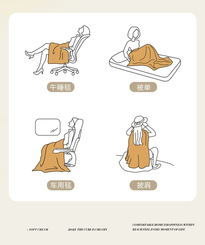规格:130*170cm 面料:聚酯纤维 重量:1800g 执行标准:GB/T22843-2009 安全类别:GB18401-2010 B类 1.触感顺滑柔软,吸湿透气,贴身舒适不闷汗。面料紧实耐磨,不易起球、不易褪色、不易变形,居家午休、沙发休闲、空调房盖毯都适用,好洗快干,实用耐造。 2.软糯亲肤,垂感好,轻盈不压身。简约百搭,提升居家质感,四季皆宜,省心好打理。
