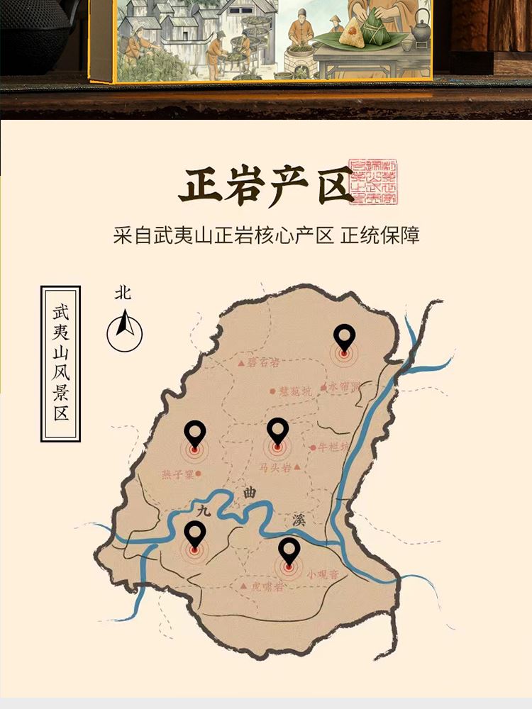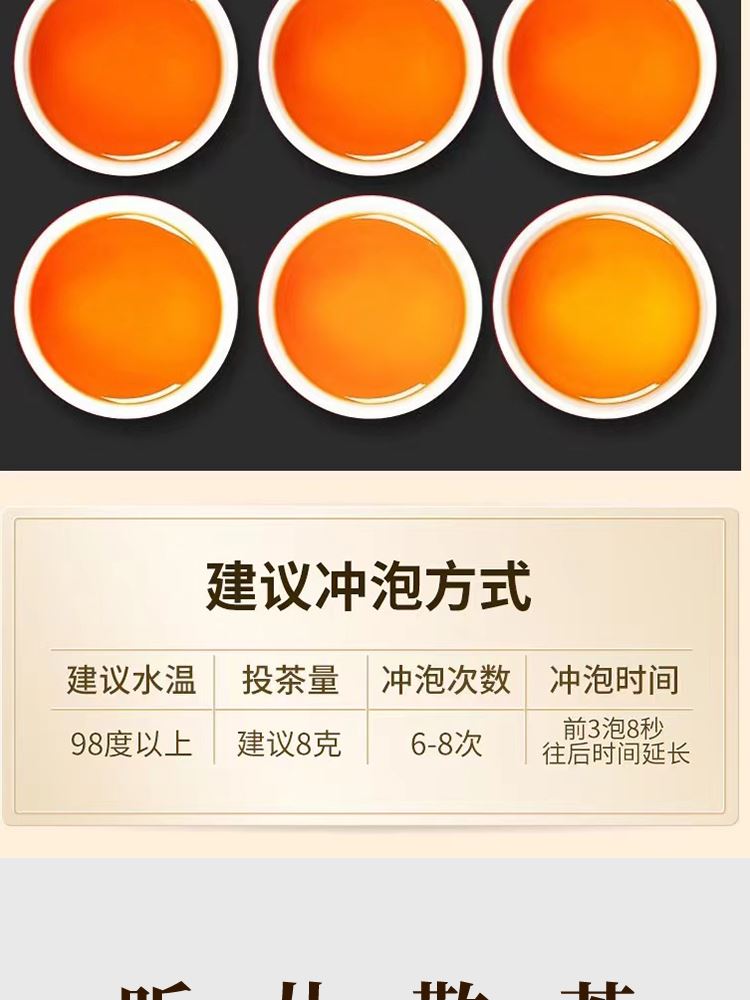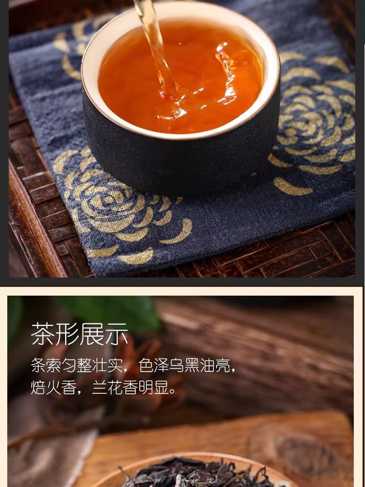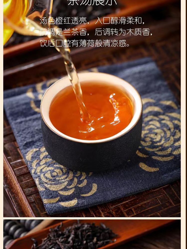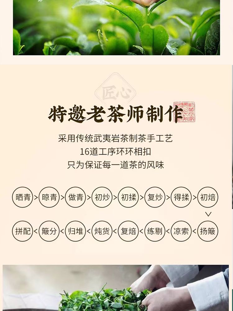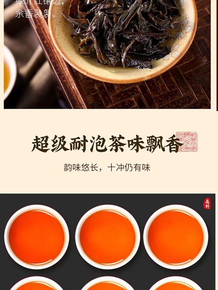 外形:紧结、壮实、稍扭曲。 色泽:带宝色或油润;整碎:匀整。 香气:锐、浓长或幽、清远; 滋味:岩韵明显,固味甘爽,杯底有香气。 汤色:清澈、艳丽、呈深橙黄色。 【重量】:160g(20泡) 【配件】:小泡茶+礼盒+手提袋 【口味】:清香型 【产地】:福建·武夷山