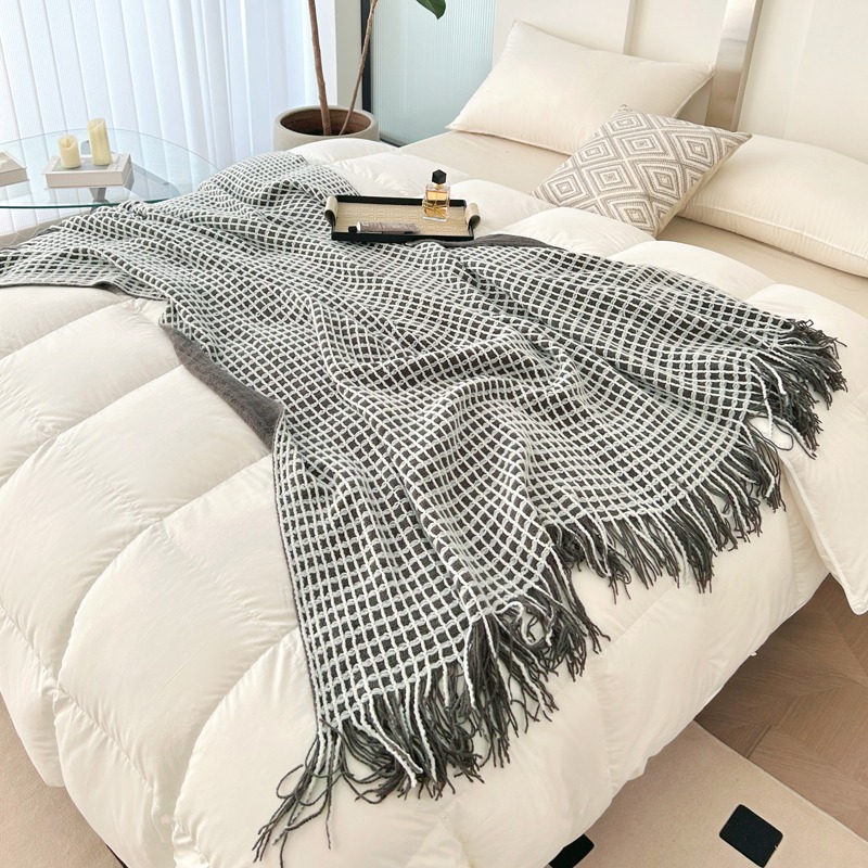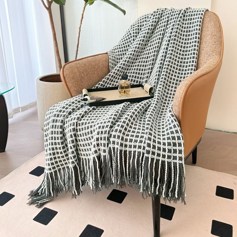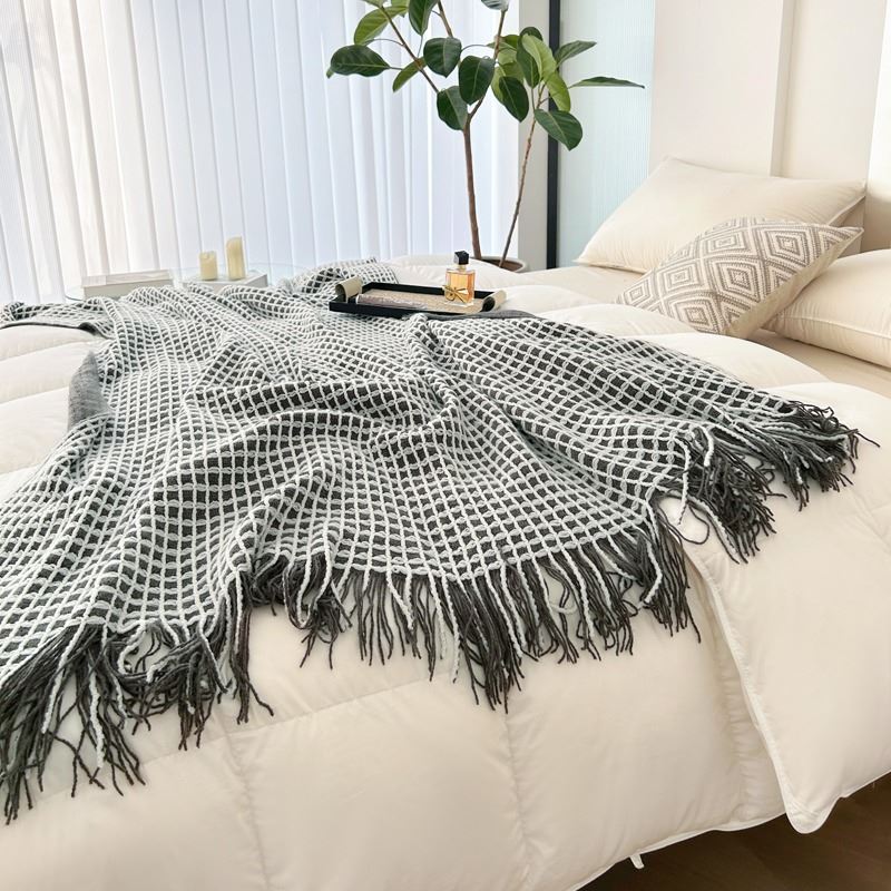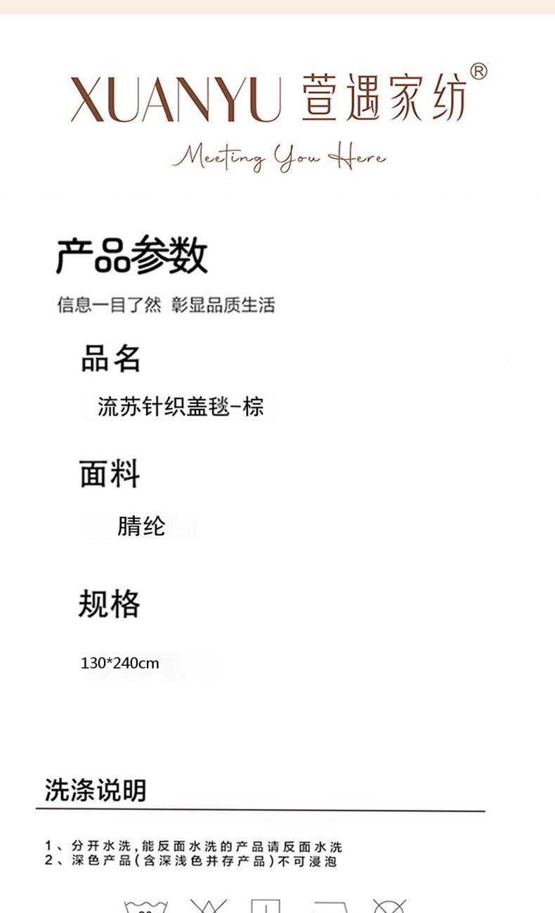 萱遇家纺流苏针织盖毯-棕Q-C7096-1