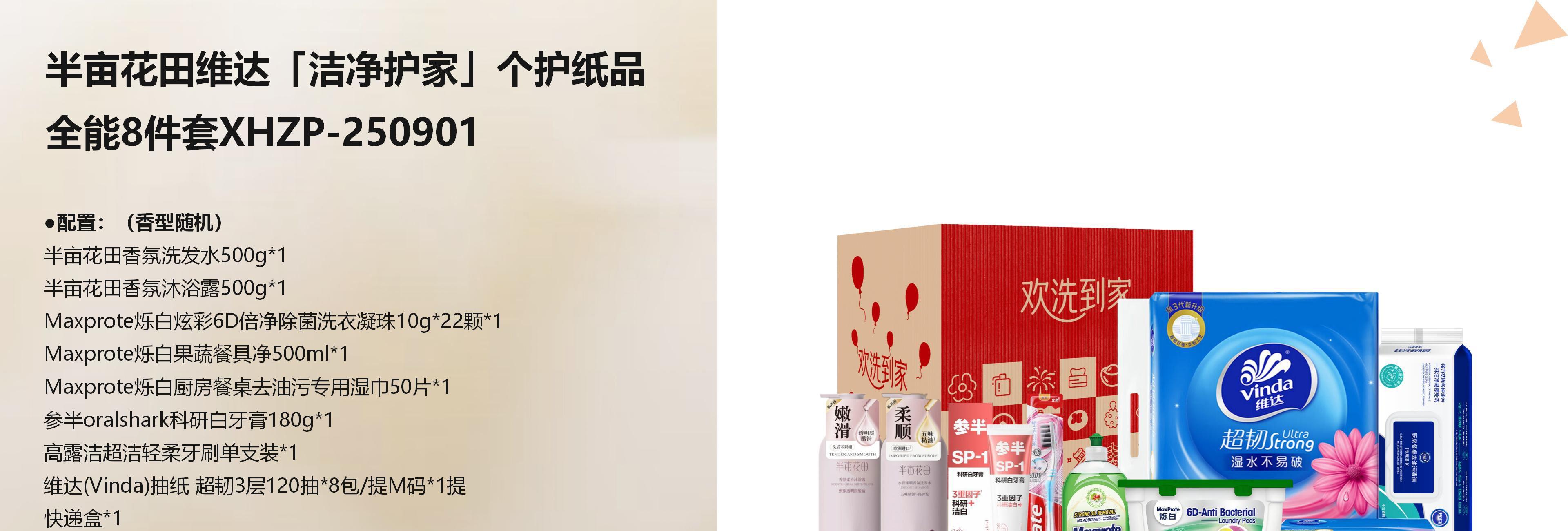 半亩花田维达「洁净护家」个护纸品8件套XHZP-250901