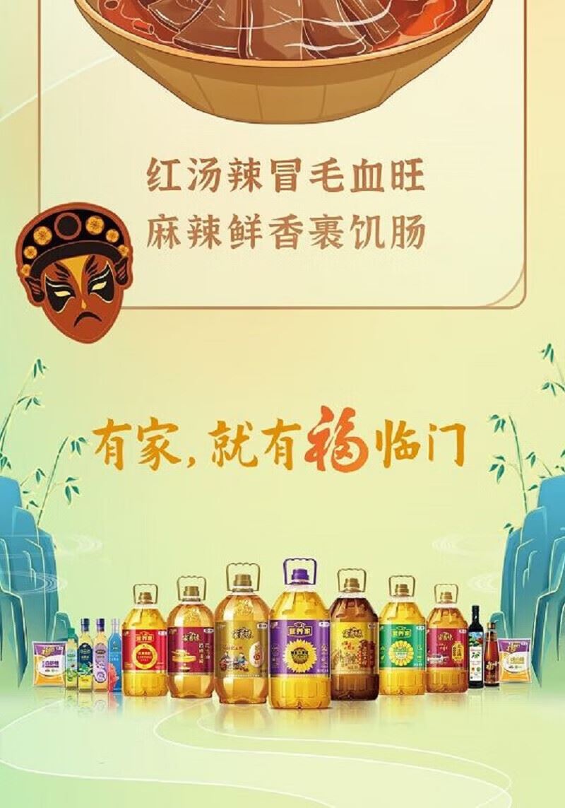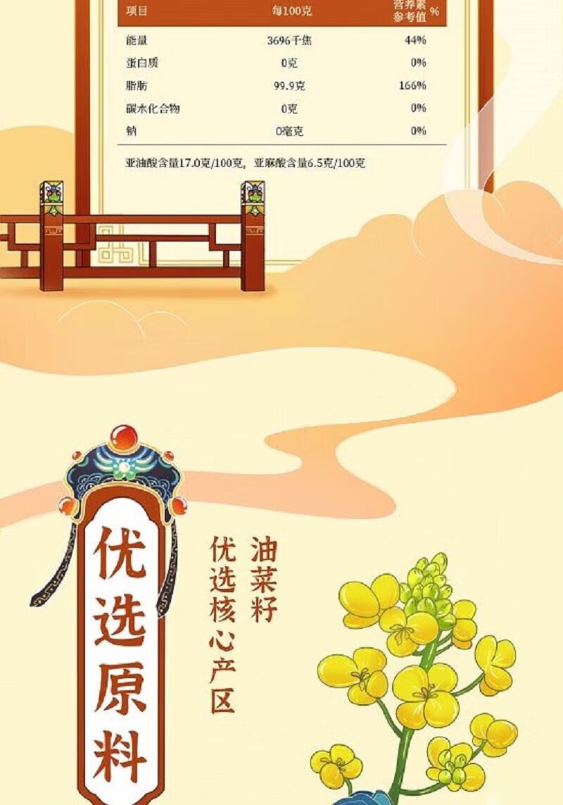 净含量:5L 推荐理由: 非转基因原料,巴蜀浓香正宗 甄选非转基因菜籽,川渝风味浓郁,复刻地道川菜香。 物理压榨,油烟适中,爆炒提味 物理压榨工艺,保留菜籽本香,烟点适中,适配川菜爆炒、水煮、火锅等。 5L 家庭大桶,中粮品质,实惠耐用 5L 大容量,央企福临门出品,日常烹饪性价比高,家用囤货优选。
