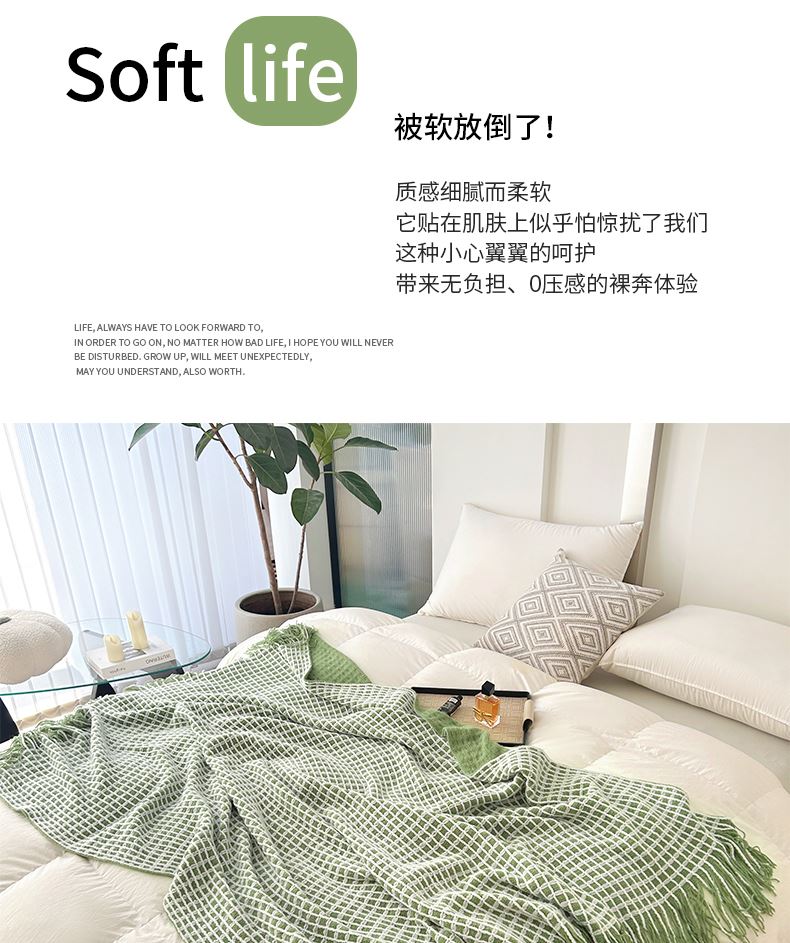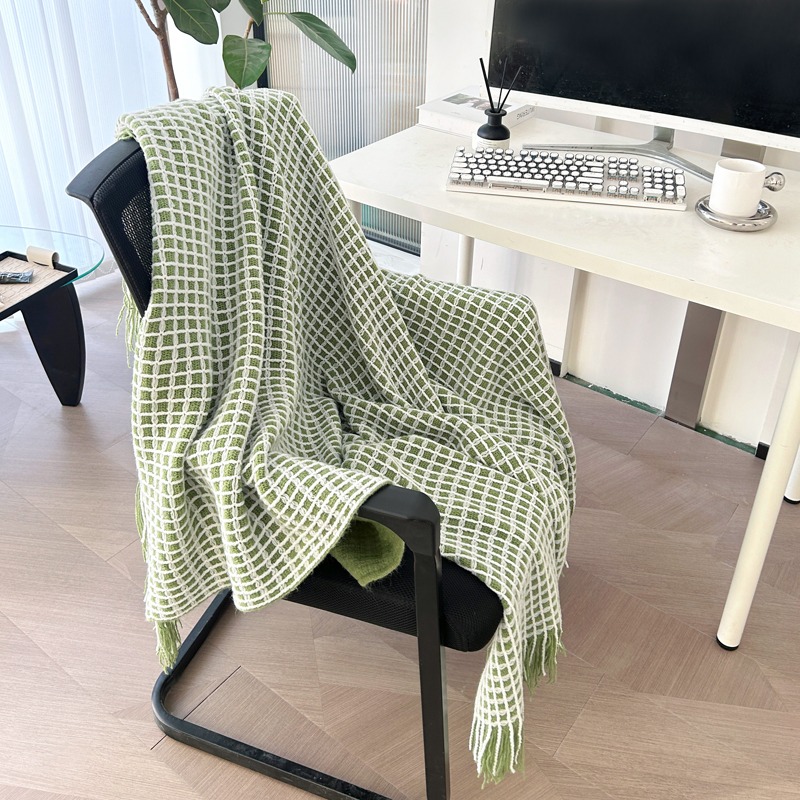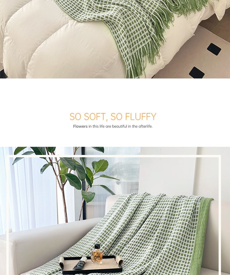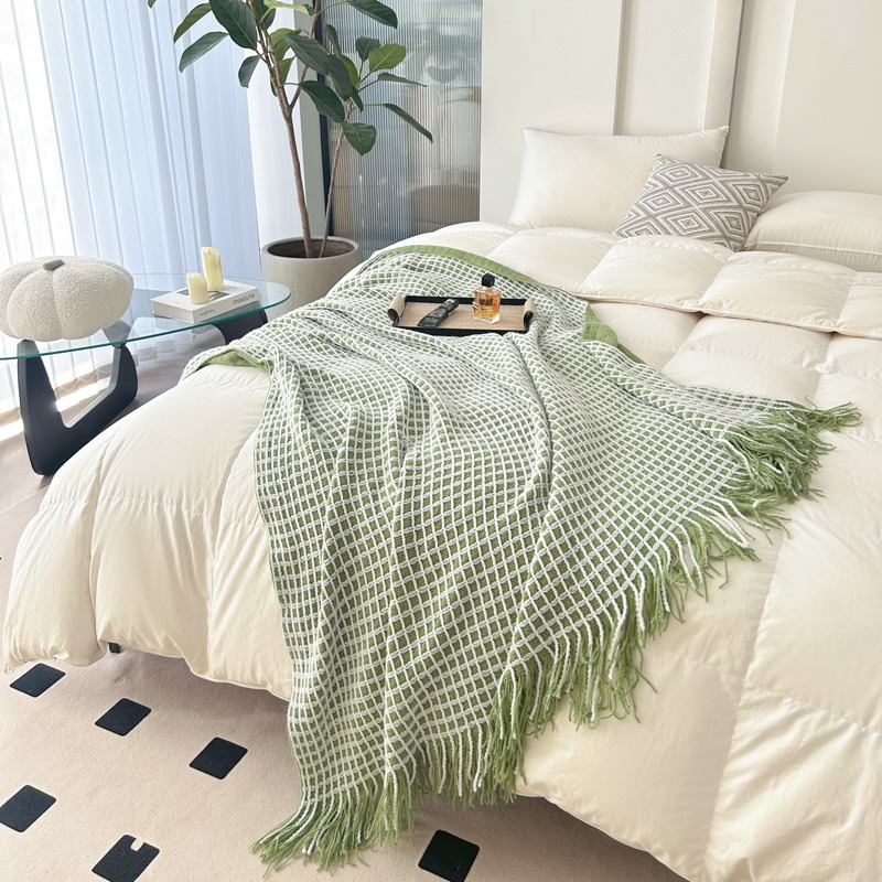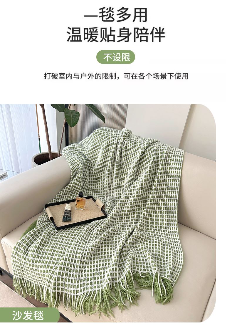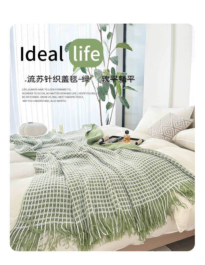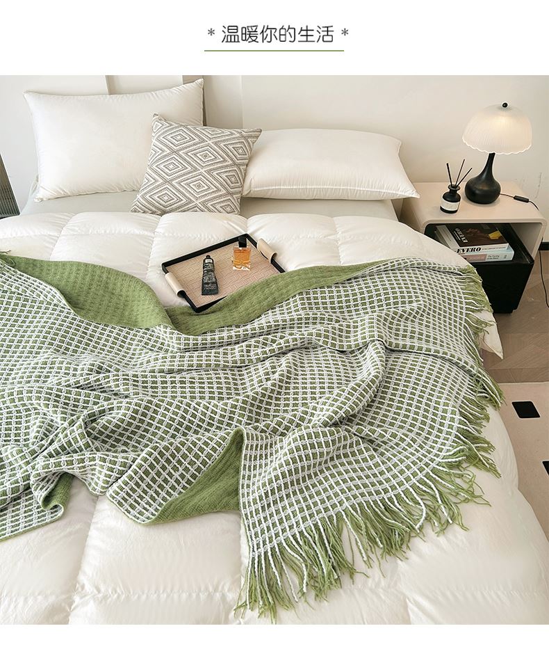萱遇家纺流苏针织盖毯-绿Q-C7103