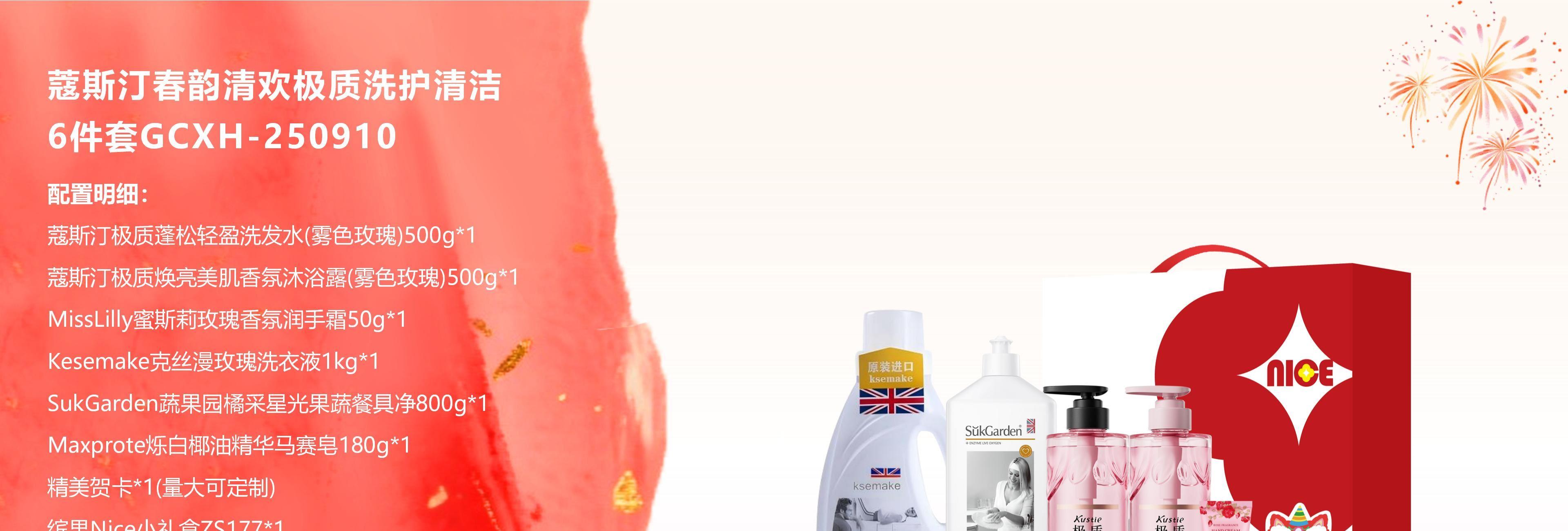 配置明细: 蔻斯汀极质蓬松轻盈洗发水(雾色玫瑰)500g*1 蔻斯汀极质焕亮美肌香氛沐浴露(雾色玫瑰)500g*1 MissLilly蜜斯莉玫瑰香氛润手霜50g*1 Kesemake克丝漫玫瑰洗衣液1kg*1 SukGarden蔬果园橘采星光果蔬餐具净800g*1 Maxprote烁白椰油精华马赛皂180g*1 精美贺卡*1(量大可定制) 缤果Nice小礼盒ZS177*1