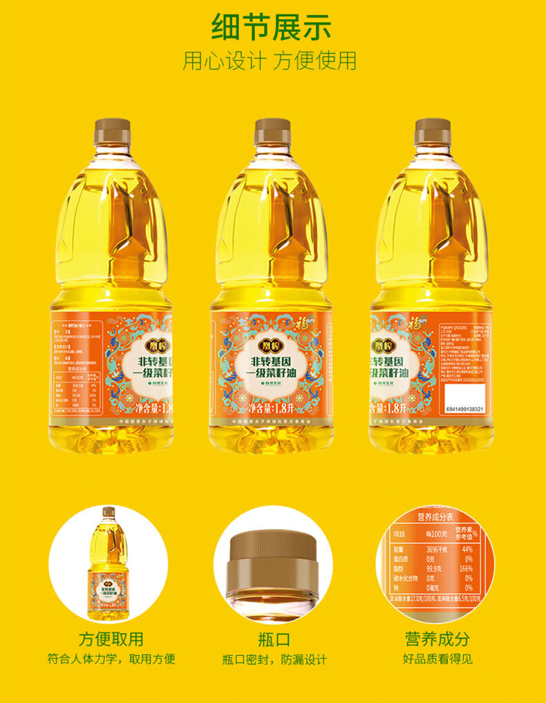 净含量:1.8L+5KG 福临门凰榨非转基因一级菜籽油1.8L 中粮皇家粮仓御香丝苗米2.5kg 福临门新疆雪花小麦粉2.5kg 推荐理由: 中粮央企,品质靠谱,吃得安心 米、面、油一站式配齐,家用送礼都合适 营养均衡搭配,日常三餐实用又实惠