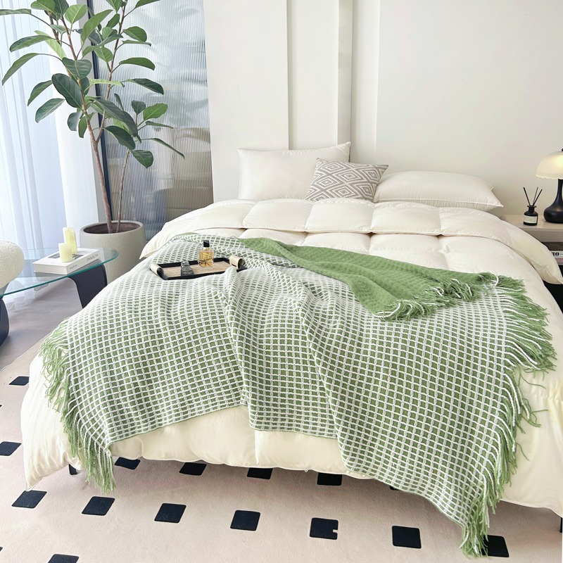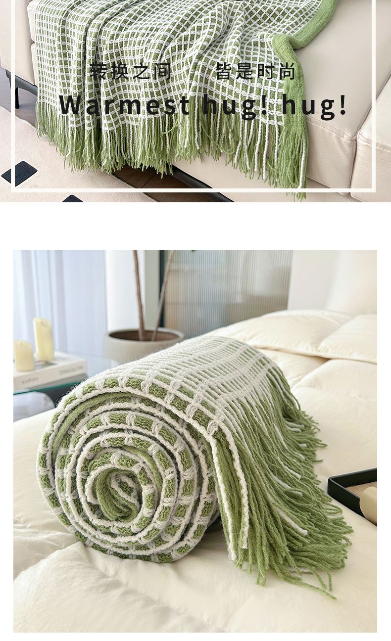 萱遇家纺流苏针织盖毯-绿Q-C7095-1