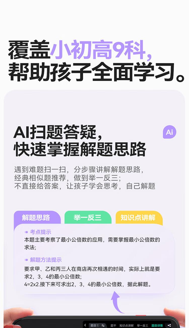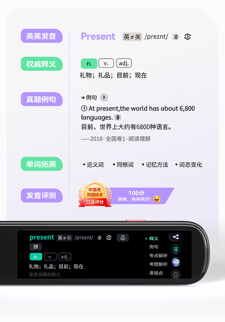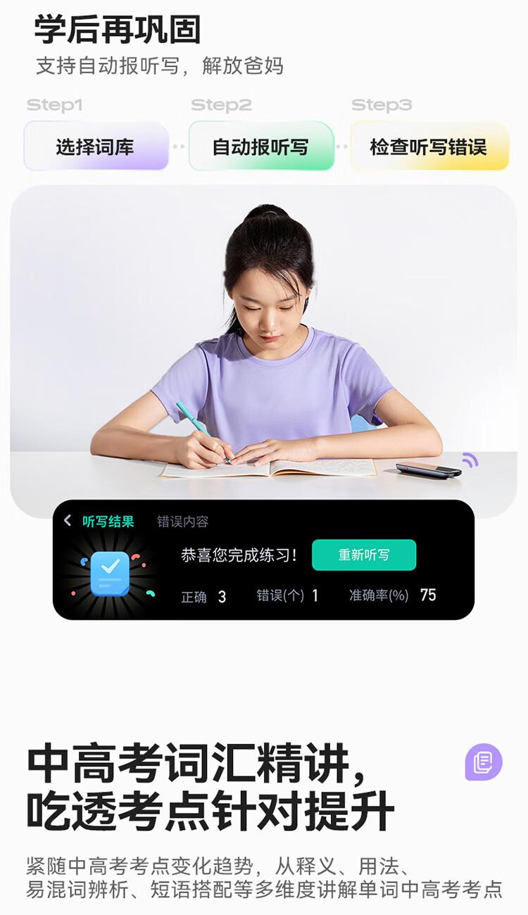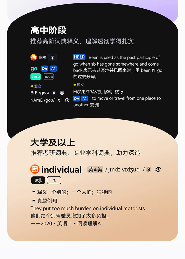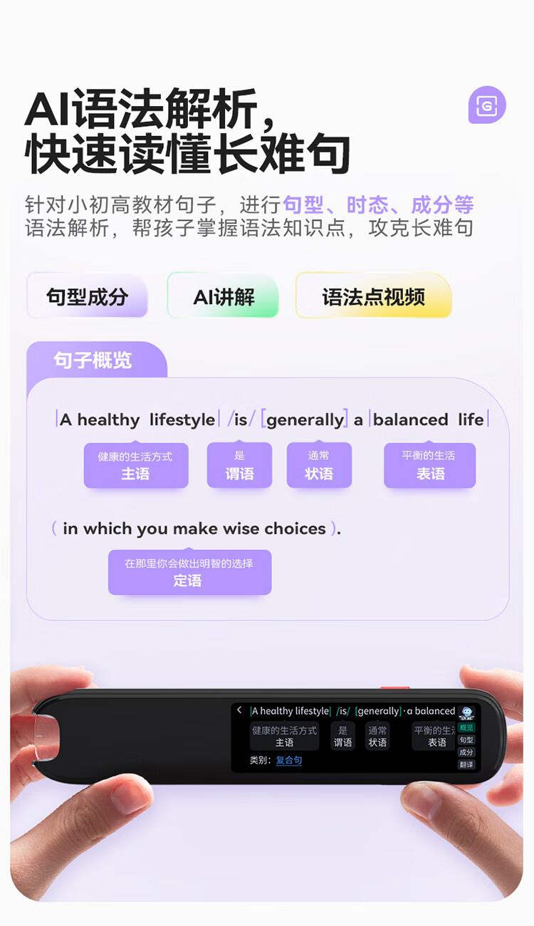 重写作 中文+英文AI作文批改,像专业老师一样辅导,针对提升写作能力 重阅读 内置AI语法精讲功能,帮孩子攻克长难句,化解阅读障碍 重口语 跟着考试标准练口语讯飞星火大模型口语陪练真实场景中 1对1练口语 重词汇 内置近100本权威正版词典 智能匹配孩子需要的内容更覆盖经济、建筑、法学等20多个学科 重文化 内置《语海》、《唐诗鉴赏辞典》等多本深度赏析中国文化词典更有上万首诗词古文