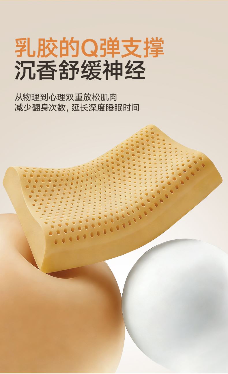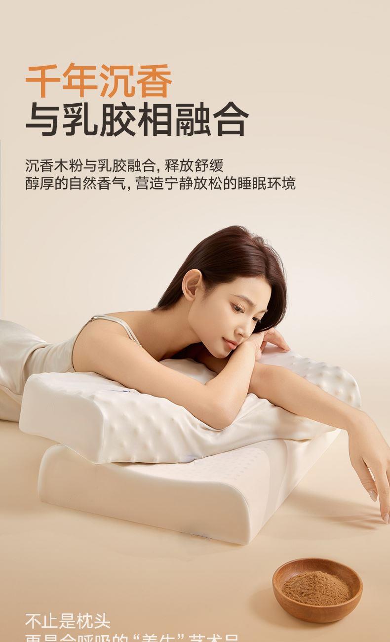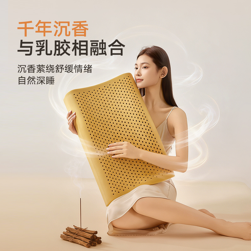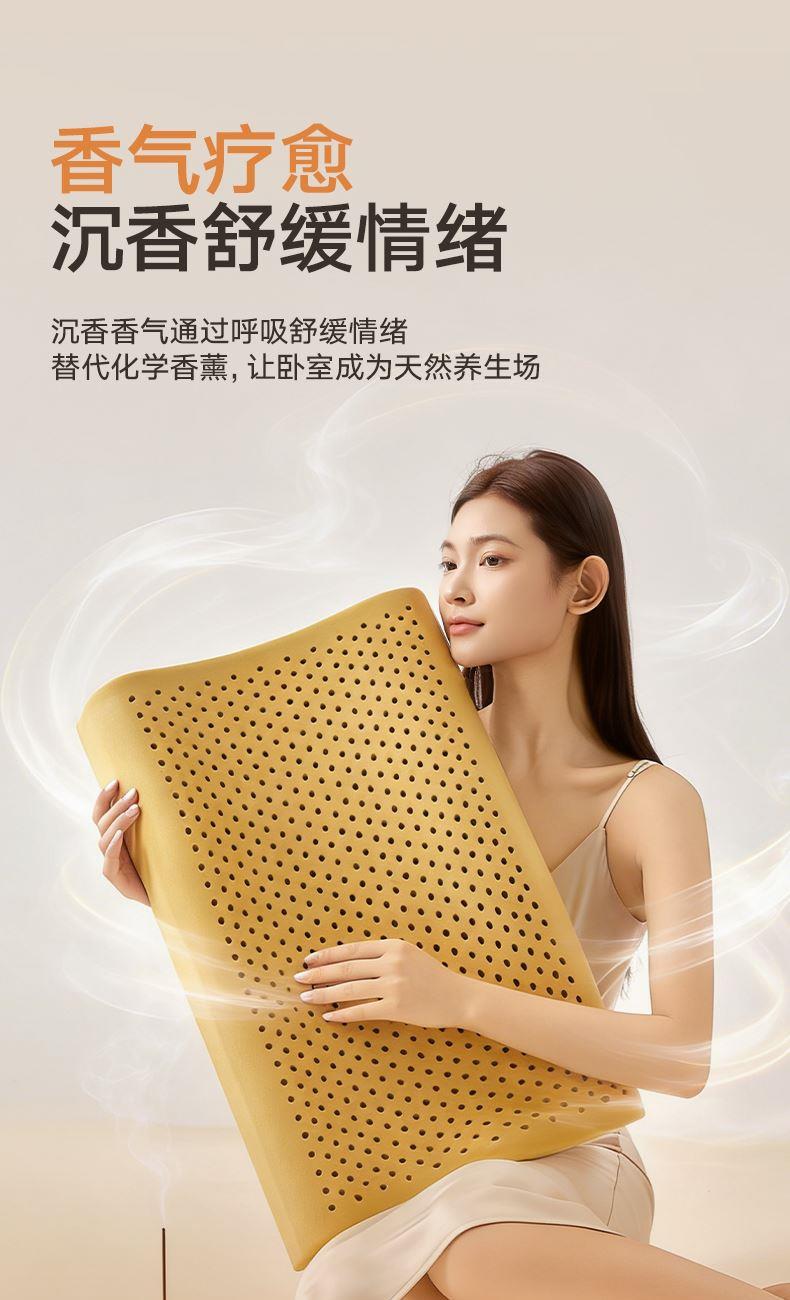 规格:40*60cm 面料:凉感丝 填充:沉香粉+乳胶 执行标准:GB/T22843-2009 安全类别:GB18401-2010 B类 1.乳胶是一种天然材质,其原液是直接从橡胶树皮中滴落下来的乳胶汁物理发泡加工一次成型,有天然乳香气息,含量高达90%以上乳胶成分,多纬蜂窝状气孔,较其他枕芯更为舒适,快速散发人体睡眠中余热和湿气 2.枕头高弹力,贴合人体脊椎生长曲度,仰睡侧睡都可以,给您更好的承托力