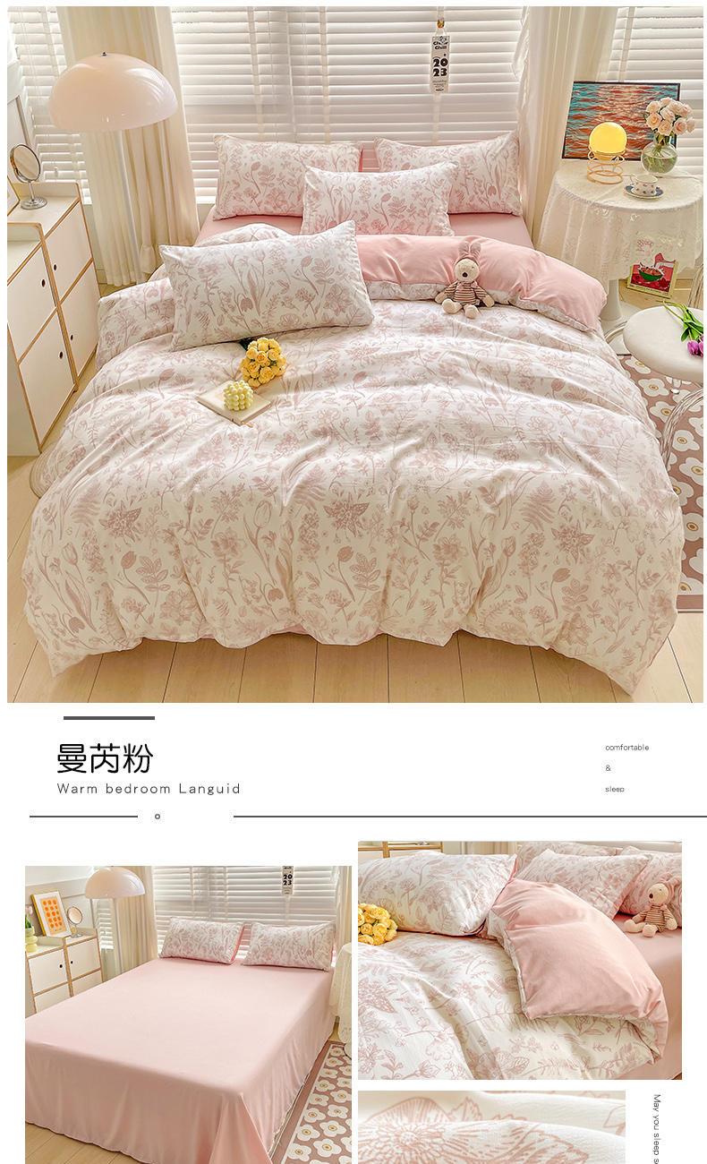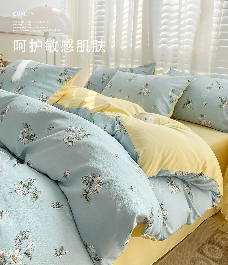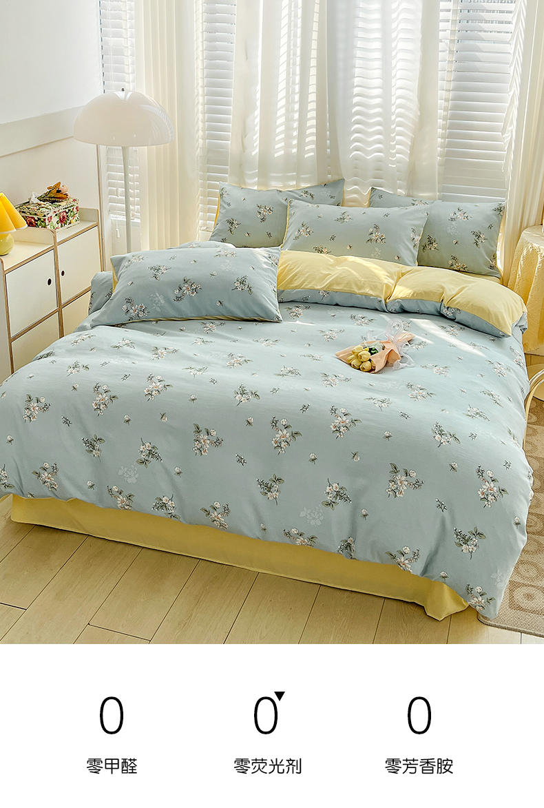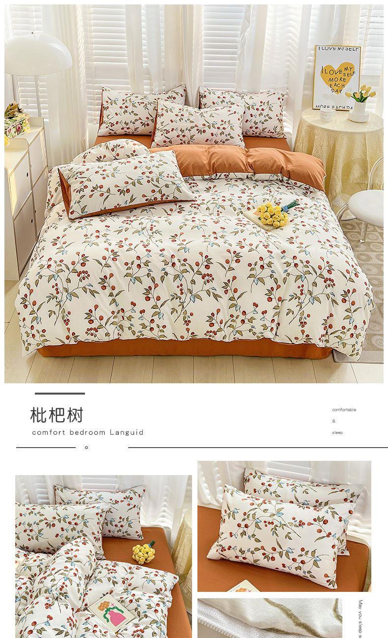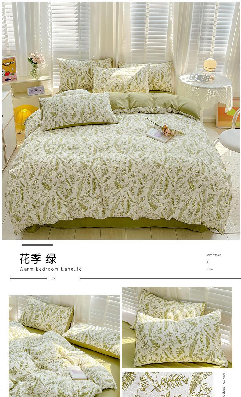 规格:被套200*230cm*1 床单230*245cm*1 枕套48*74cm*2 面料:水洗棉麻/聚酯纤维 花色:花季/花季-绿/花开半夏/花园兔/兰玫瑰/曼芮粉/曼塔玫瑰/玫瑰物语/枇杷树/清欢-蓝/四叶草-黄/微微安/维亚/小熊院长/云深茶白 法式小清新印花,面料A类棉麻水洗棉,柔软透气,软糯贴身拒绝僵硬手感,贴肤透气,细腻绵软,时尚AB双面设计,活性印染色牢度高不易褪色,不易起球,久洗如新!细致做工,内里欧式锁边,尽显匠心工艺,隐形拉链贴心系带