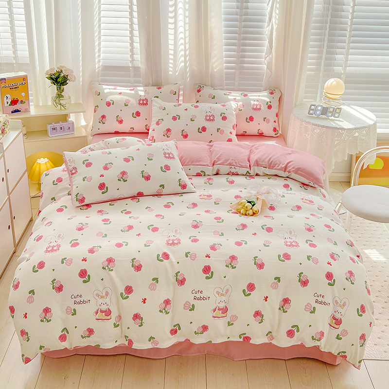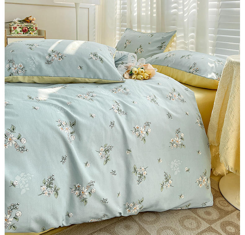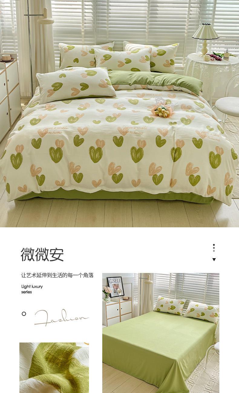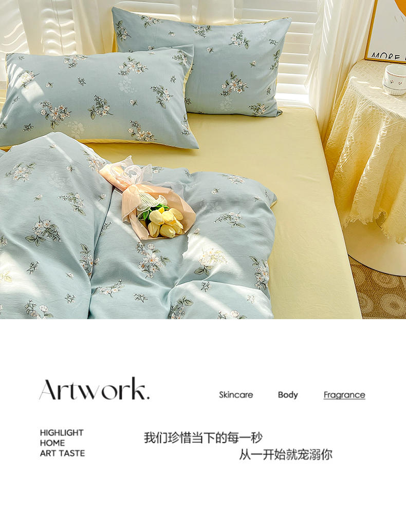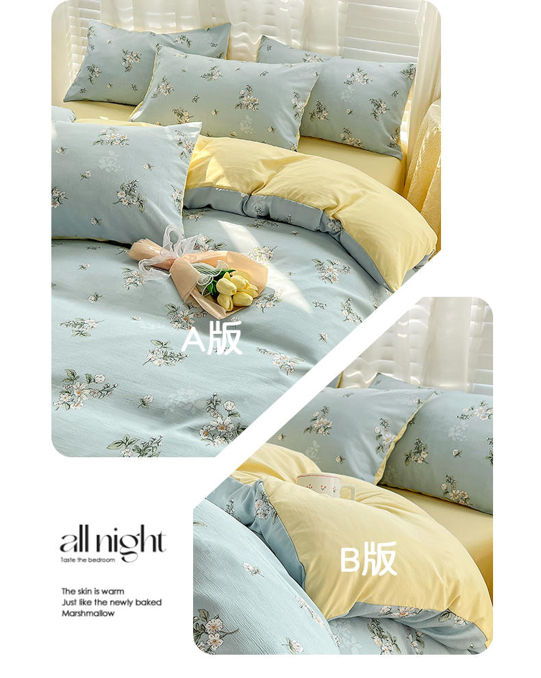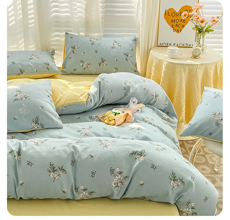 规格:被套200*230cm*1 床单230*245cm*1 枕套48*74cm*2 面料:水洗棉麻/聚酯纤维 花色:花季/花季-绿/花开半夏/花园兔/兰玫瑰/曼芮粉/曼塔玫瑰/玫瑰物语/枇杷树/清欢-蓝/四叶草-黄/微微安/维亚/小熊院长/云深茶白 法式小清新印花,面料A类棉麻水洗棉,柔软透气,软糯贴身拒绝僵硬手感,贴肤透气,细腻绵软,时尚AB双面设计,活性印染色牢度高不易褪色,不易起球,久洗如新!细致做工,内里欧式锁边,尽显匠心工艺,隐形拉链贴心系带