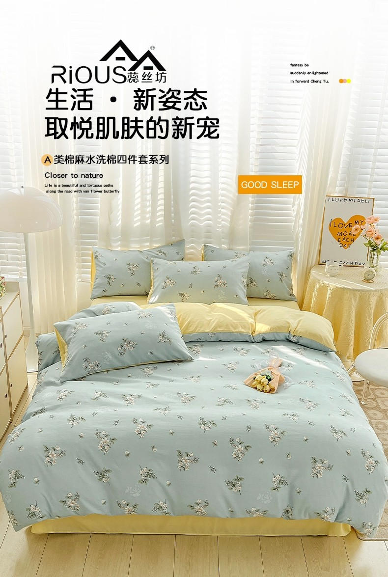 蕊丝坊家纺水洗棉麻床单四件套